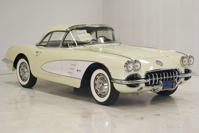 1010T..1959 Corvette Convertible, two tops, 283-245 hp, (2x4's), 4 speed, numbers matching. Classic Cream paint with White coves, Black interior, and White soft top. Recent NCRS/Bloomington Gold quality body-off restoration with no excuses that will pass any potential buyer's inspection. These type restorations normally cost between $100,000.00 to $150,000.00. Optioned with auxiliary hardtop, T-10 transmission, 4.11 posi, Wonderbar radio, dual fours, aluminized off road exhaust, sunvisors, windshield washers, courtesy light, heater, hubcaps, and 6.70x15" wide white tires. Most all factory correct type components including the spare, jack, jack tools, trunk mat, trunk liner, rebound straps, seat belts, washer system, shifter, shielding, air cleaner, generator, distributor, spark plug shields, hoses, hose clamps, fuel filter, carbs, radiator, guide Y-50 mirror, owners manual, sales brochure, and T-3 headlights. Documented with copies of prior owner titles, extensive restoration photos and restoration receipts. Classic Cream with White coves was a very rare paint color combination and one of 89 produced. This recently restored Corvette has yet to be shown, creating an exciting opportunity for the next owner to exhibit the car and compete for trophies, awards, and recognition! Just in from the Lindquist Corvette Collection. Looks, runs, and drives excellent. CC:1 $149,000.00